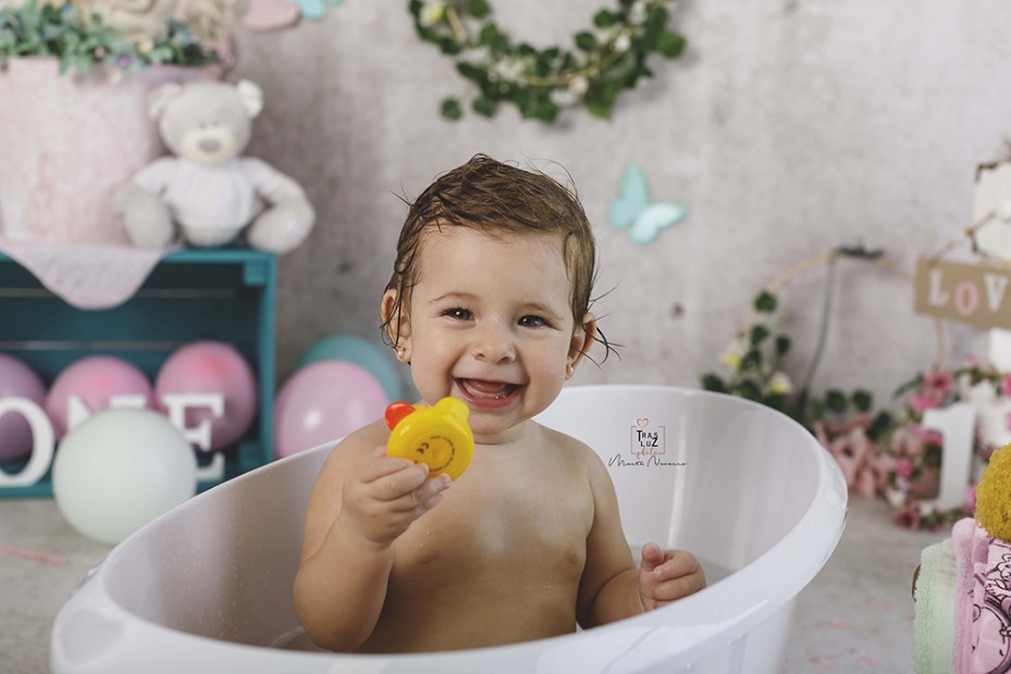 Su primer añito es muy especial, los peques ya interactúan mucho, ríen, lloran, gatean, saben lo que quieren y lo que no, esto nos permite plasmar en imágenes como es realmente cada bebé puesto que no se pueden posar para sacar la foto bonita. Para much@s de ell@s es la primera vez que prueban un pastel y descubren las sensaciones que les hace comer, tocar, oler esa cosa nueva que tienen delante, son muy curios@s y les encanta inspeccionar y experimentar nuevas sensaciones.¡Y después de la tormenta llega la calma! Toca la hora del baño que a tod@s les encanta, jugar con el agua y las pompas de jabón, chapucear con manos y pies, beberse el agua de la bañerita o conseguir coger un patito..., nos dejan el estudio patas arriba, pero vale la pena compartir con ell@s estos pequeños ratitos que dejaran huella en sus recuerdos.